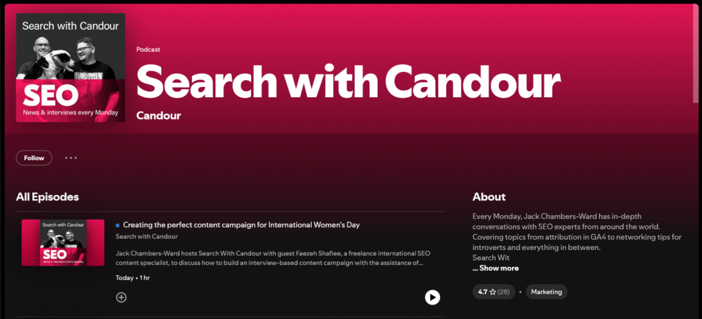 Why you’ll love it: Each episode features industry pros sharing strategies that actually work. Expect fresh talk on topical authority, multilingual SEO, digital PR case studies, and outreach campaigns that earn high-quality links. The team provides practical takeaways, making it a must-listen for anyone focused on building brand authority and growth in the AI era.